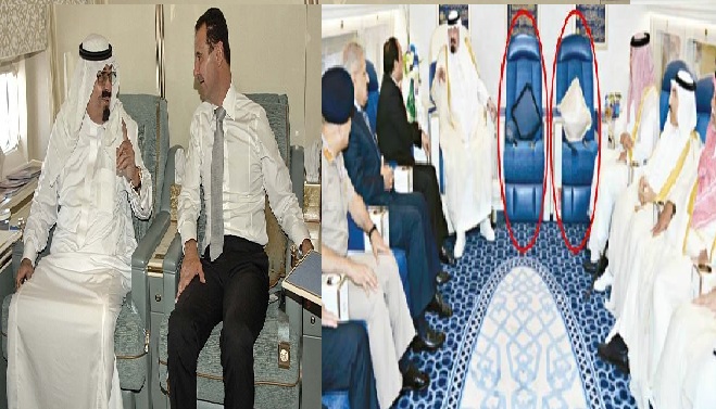 في نفس الطائرة التي جلس بها قائد الانقلاب المشير عبد الفتاح السيسي، جلس فيها الرئيس السوري بشار الأسد مع الملك عبد الله بن عبد العزيز، مع فارق ملحوظ وهو أن الرئيس الأسد جلس بشكل ندي مع الملك عبد الله عكس السيسي الذي جلس كموظف أو وزير لدى الملك عبد الله.