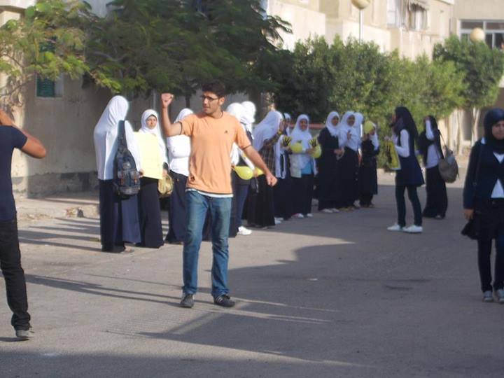 قام عدد من طلاب مدرسة ابو بكر الصديق بدمياط الجديدة المناهضين للانقلاب بسلسلة بشرية أمام المدرسة في الصباح أثناء دخول الطلاب قبيل اليوم الدراسي.